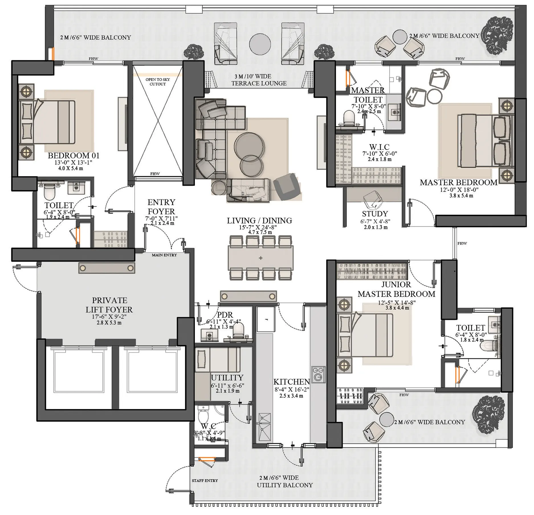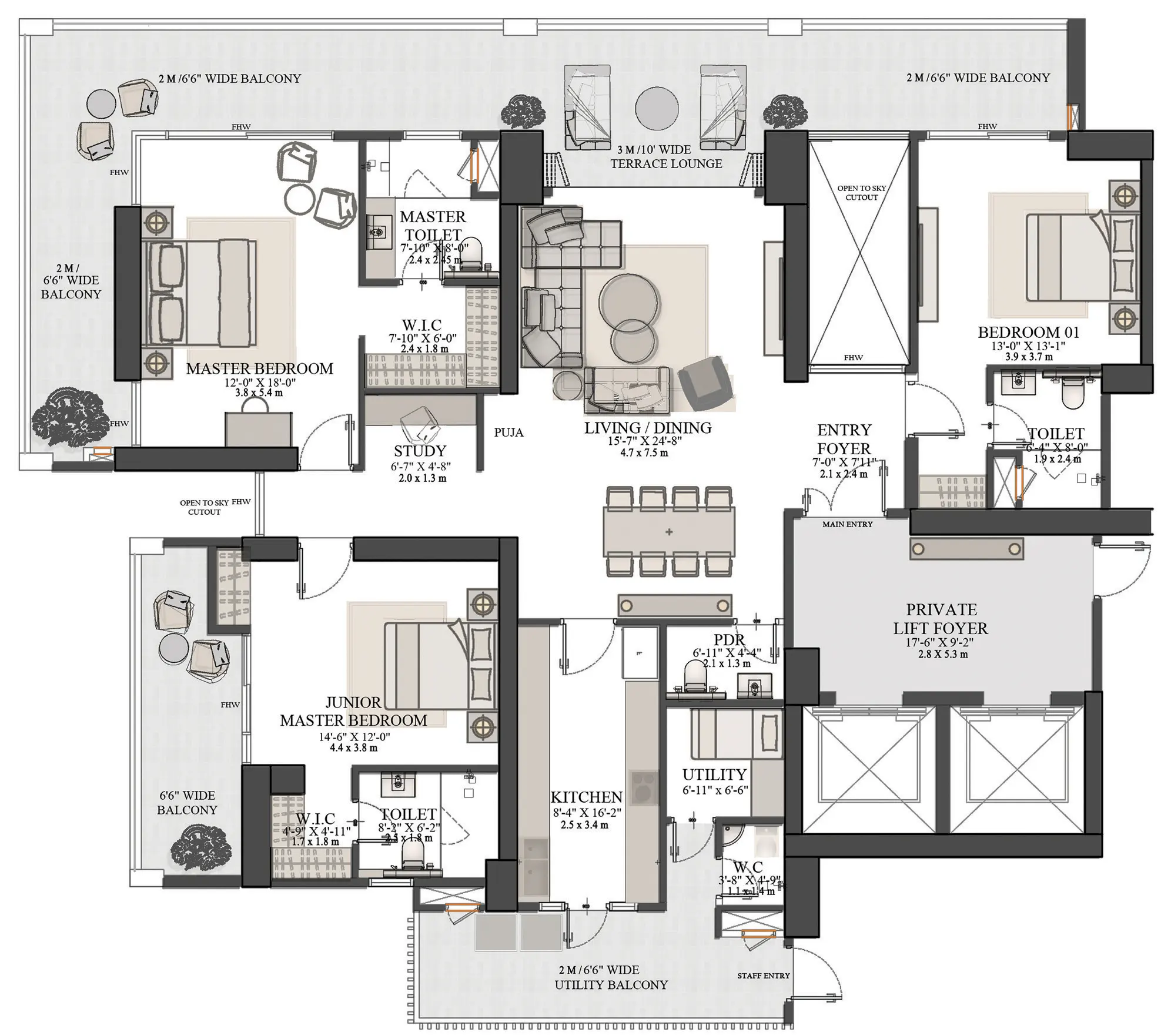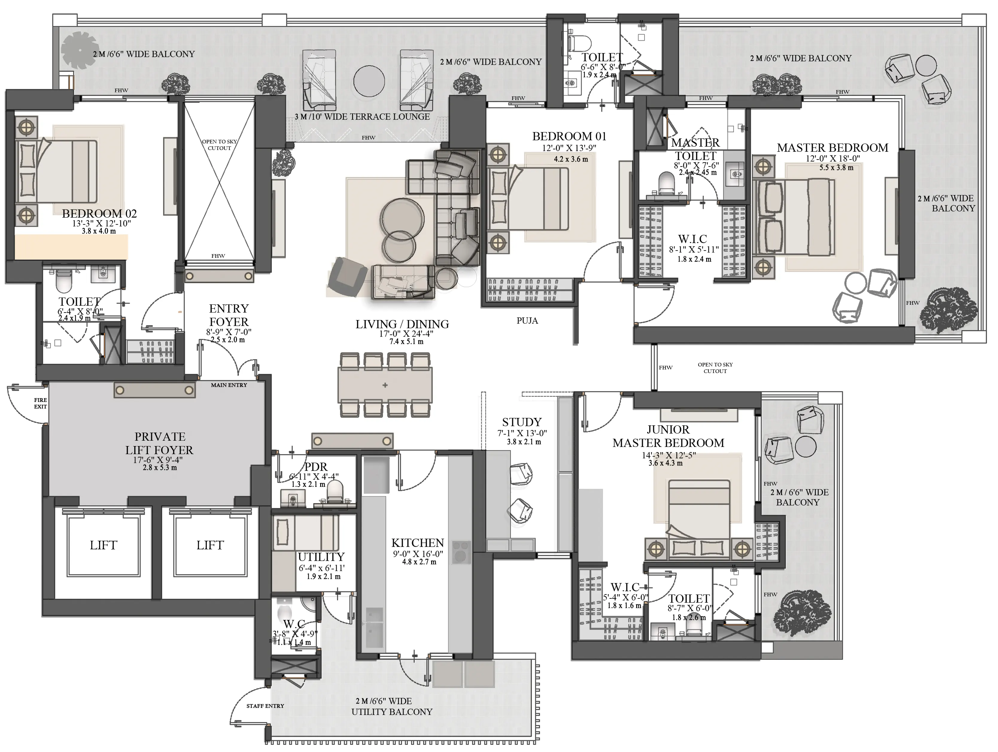 The project comes with an ideal range of properties in the form of 3.5 and 4.5 BHK apartments where all of them are based on the new layout to get the maximum use of the space and other than this, can simply feel the difference of modern and ordinary lifestyle.